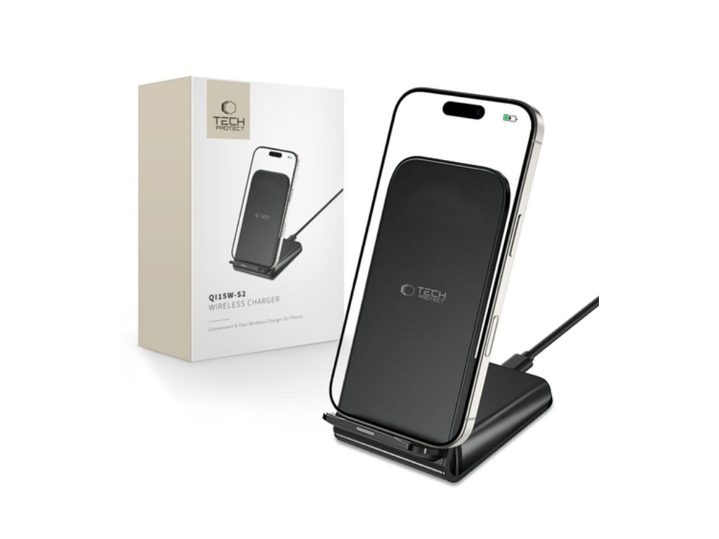 Rychlá bezdrátová stolní nabíječka Tech-Protect QI S2 15W černá