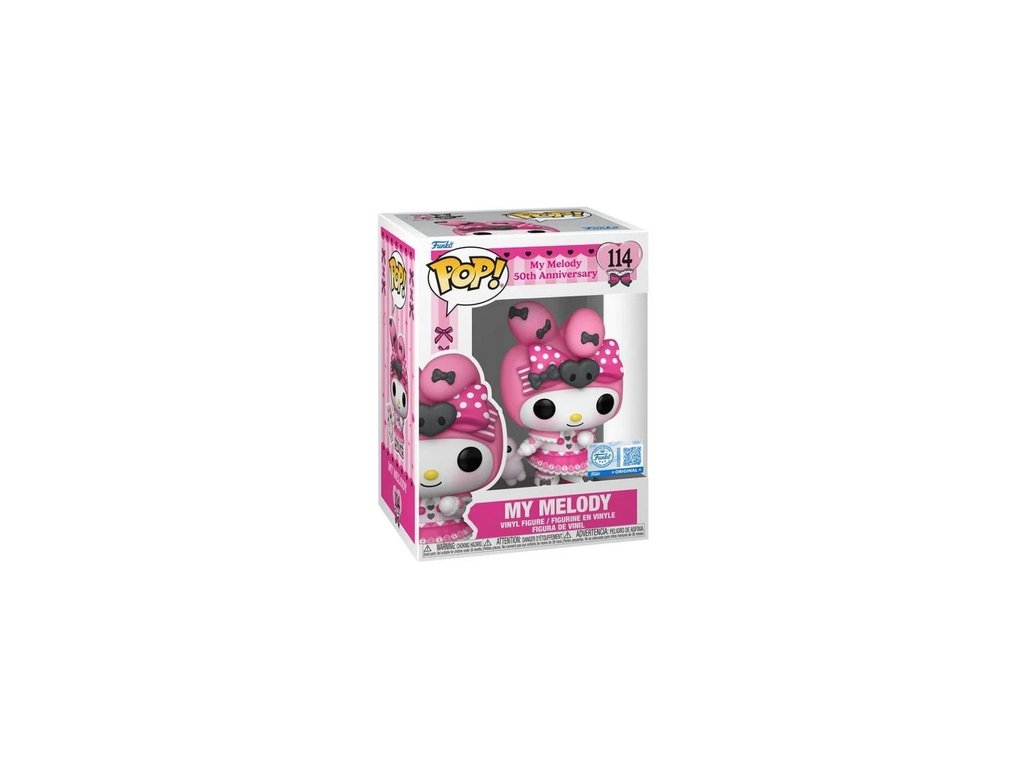 Oficiální Funko POP figurka My Melody. Postavička o výšce 10 cm přináší klasický design této roztomilé hrdinky s růžovou kapucí a jemným úsměvem. SPC verze je určena sběratelům, kteří ocení unikátní edici s vyšší hodnotou a detailním zpracováním.
