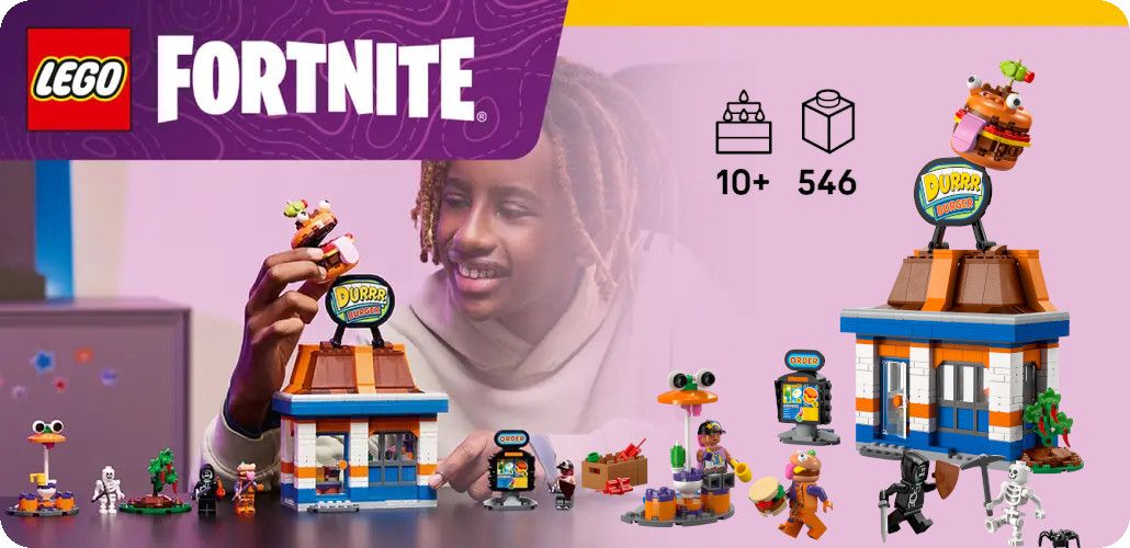 - Podněcujte kreativní hraní – Fanoušci od 10 let se vydají na stavitelská dobrodružství se stavebnicí LEGO® Fortnite® Restaurace Durrr Burger, videoherní hračkou pro děti, teenagery i dospělé.