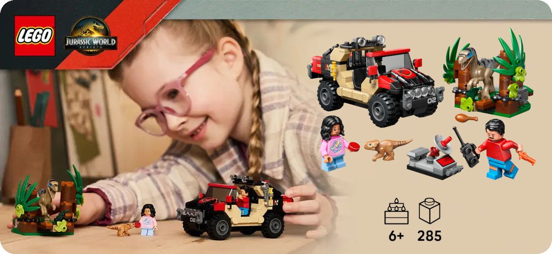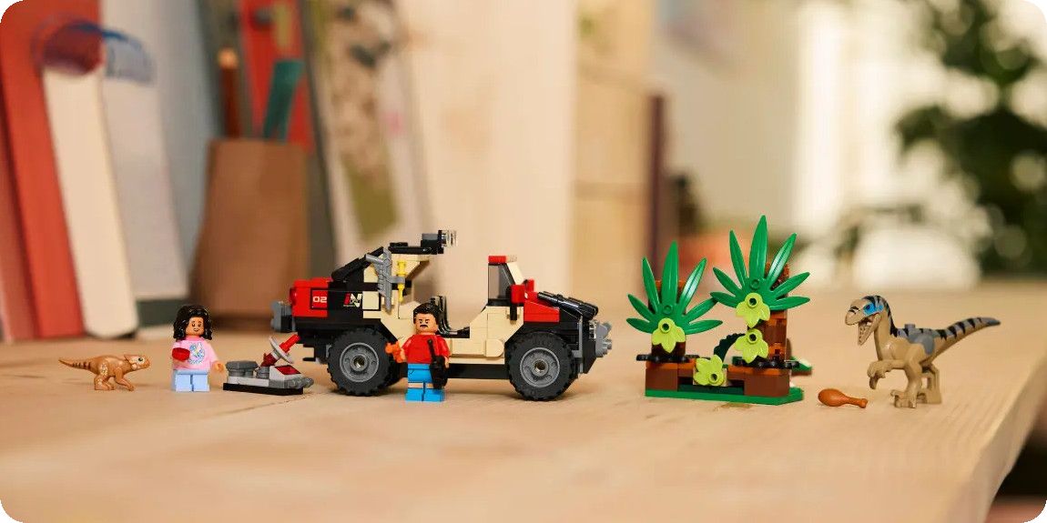 Připravte se na vzrušující dobrodružství, kde na vás čeká velociraptor s pohyblivou čelistí. Pomozte Reubenovi a Isabelle Delgadovým vysvobodit mládě dinosaura a uniknout před nebezpečím v terénním autě. Použijte sledovací zařízení, abyste měli dinosaura pod kontrolou, a dávejte pozor na keř s efektem „překvapení“. Váš herní zážitek bude díky této funkci skoku z úkrytu ještě napínavější. Postavte si příběh, a až bude hotovo, znovu ho složte, aby dobrodružství mohlo začít nanovo!