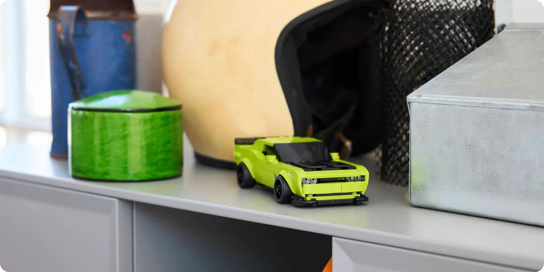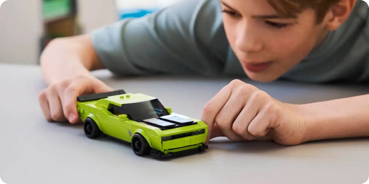 - Ikonický sporťák: Postavte si první moderní model Dodge v řadě LEGO® Speed Champions, Sportovní auto Dodge Challenger SRT Hellcat.