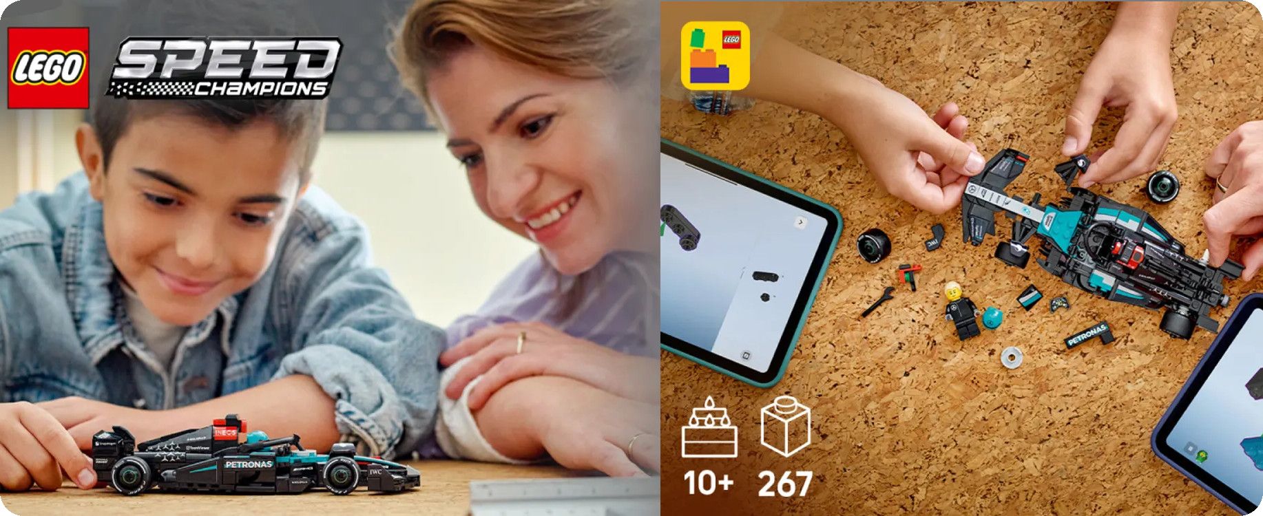 - Autentické detaily: Postavte si elegantní závodní vůz Mercedes-AMG F1, který věrně kopíruje design vozu z Mistrovství světa Formule 1 v roce 2024.