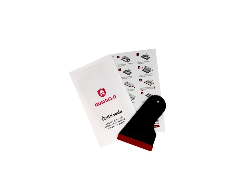 Gushield ochranné sklo s aplikátorem se vyznačuje tvrdostí 9H a designem, který pokrývá celý povrch displeje, aniž by rušilo vzhled či funkci zařízení. Díky oleofobní vrstvě nebudou na povrchu zůstávat otisky prstů a dotyková odezva zůstane nezměněna.
