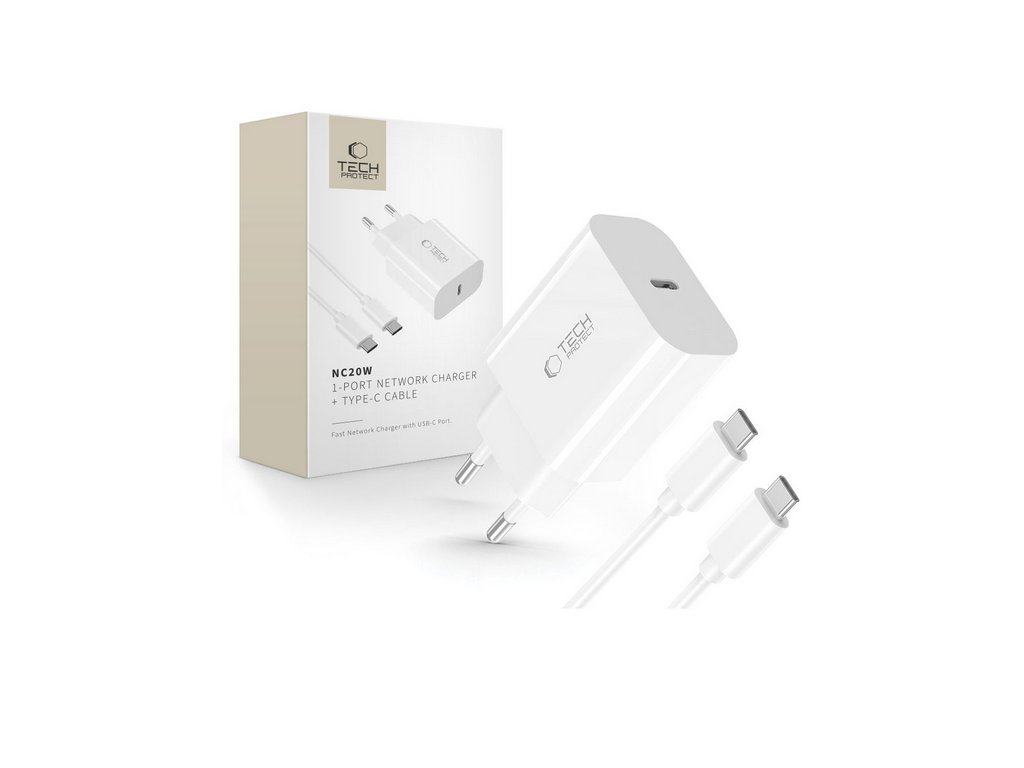 Tech-Protect NC20W PD20W USB-C wall charger with USB-C cable - white