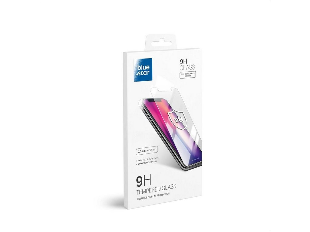 Tvrzené sklo Blue Star s tvrdostí 9H prodlužuje životnost obrazovky vašeho zařízení. Díky extrémně nízké tloušťce 0,3 mm je zcela nezjistitelné a neviditelné. Poskytuje 120% hodnotu dotyku a svobodu používání. Sklo chrání obrazovku před prasklinami, poškrábáním a poškozením. Oleofobní povlak zajišťuje čistotu obrazovky a odolnost proti otiskům prstů a nečistotám. Sklo obsahuje prvky nezbytné pro vlastní montáž se speciálními samolepkami usnadňujícími správné umístění skla. Po aplikaci sklo díky celému povrchu skla dobře přilne k obrazovce a nezanechává vzduchové bubliny. Nepřilnavé složení usnadňuje obraz skla bez zanechání stop. Hrany skla jsou zaoblené - bezpečnost zaručena. Vlastnosti: Sada obsahuje: