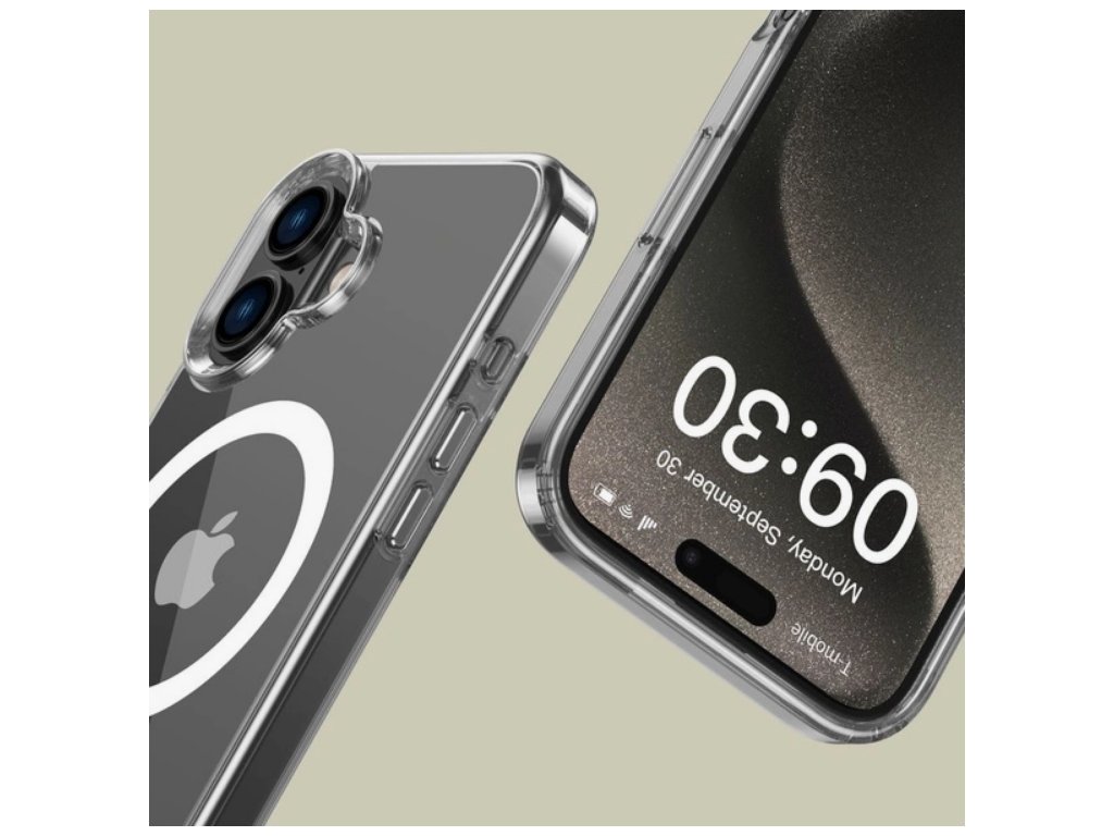Klasické jednodílné pouzdro Flexair Hybrid Magsafe od Tech-Protect s průhledným povrchem, které zdůrazňuje linie a originální siluetu zařízení.