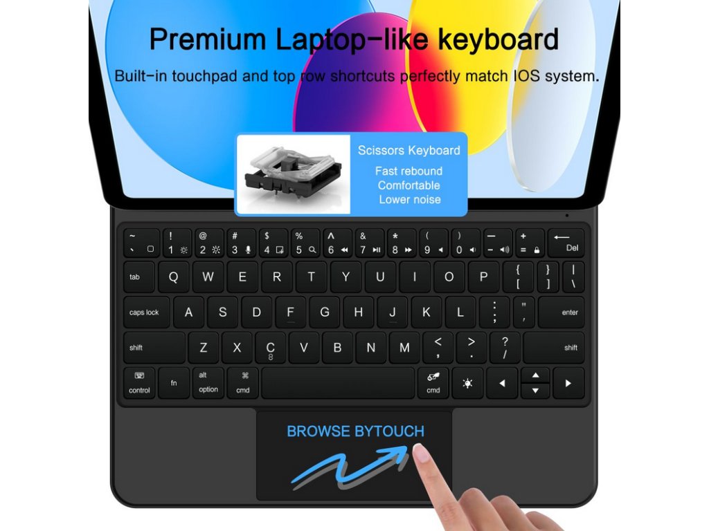 Součástí balení je podsvícená klávesnice Bluetooth s pohodlným rozložením jako u notebooku a přesným touchpadem, takže můžete psát, procházet web a pracovat s aplikacemi, aniž byste se museli dotýkat obrazovky. Vestavěné systémové zkratky urychlují práci a klávesnici lze snadno připojit a používat.