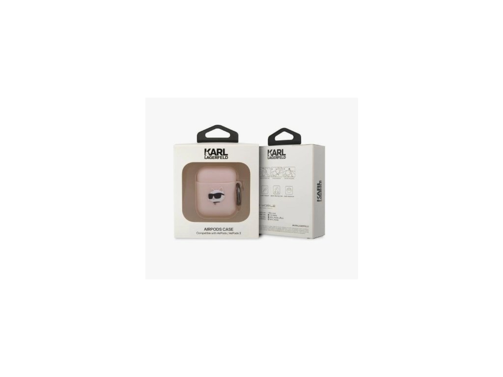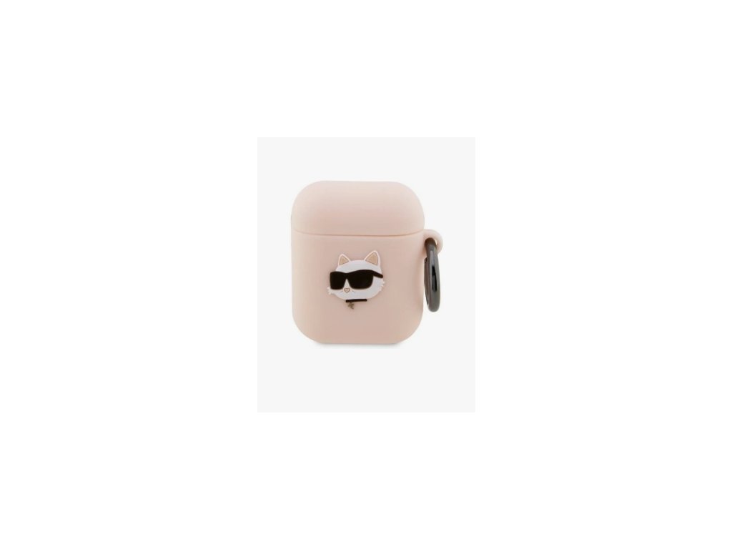 Karl Lagerfeld AirPods 1/2 růžový silikonový kryt Choupette Head 3D